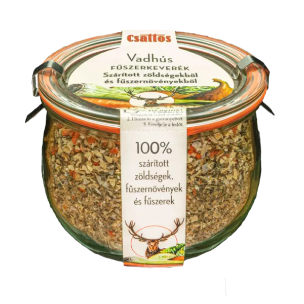 Fűszerkeverék szárított zöldségekből és fűszernövényekből VADhúsos ételek készítéséhez.
